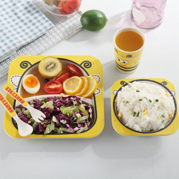 5 Pieces Bamboo Fiber Cartoon Baby Feeding Set