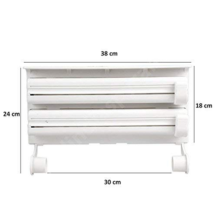 Convenient, Quick, Practical, Healthy triple Dispensers Where You Can Load Paper Towel, Aluminium Foil Roll And Cling Film time Saving And Easier To Maintain Than Cutting The Rolls Manually great Idea To Store Aluminum Foil And Paper Towel, Cling Film In One Dispenser compact Body That Saves A Large Space In Kitchen simple Front Loading With Mountable Paper Towel Rack durable Plastic Construction Easy To Set-up And Refill.